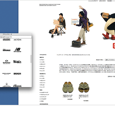 ユーザビリティ面よりも、様々なブランをを扱うセレクトショップとしての「ブランド」を意識付けつつ、それぞれのブランドイメージを邪魔しないように、という意識が見えます。